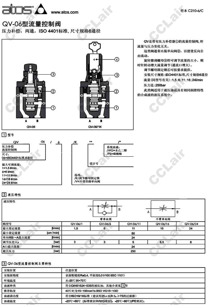 QV-06,QV-06/1/K,QV-06/6/K,QV-06/11/K,QV-06/16/K,QV-06/24/K,阿托斯ATOS流量控制閥 |