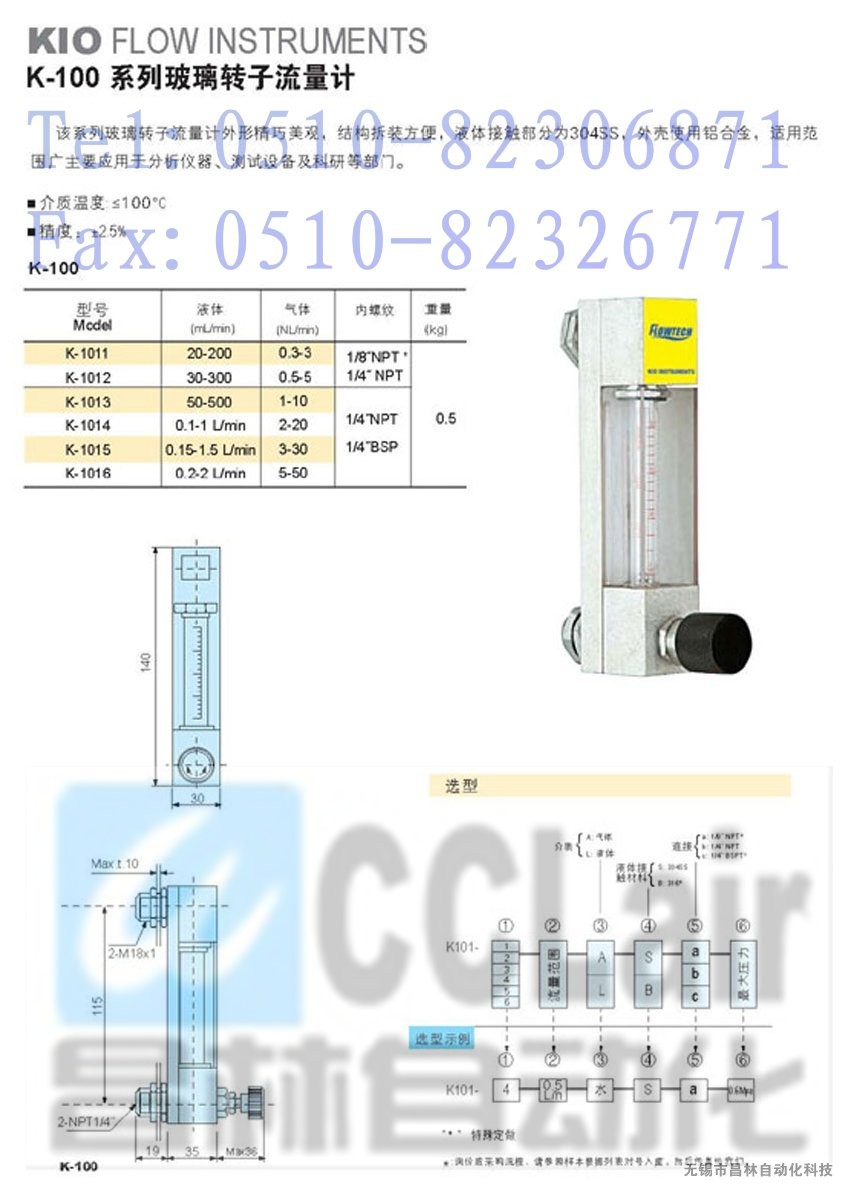 K-1014,K-1015,K-1016玻璃轉(zhuǎn)子流量計(jì)