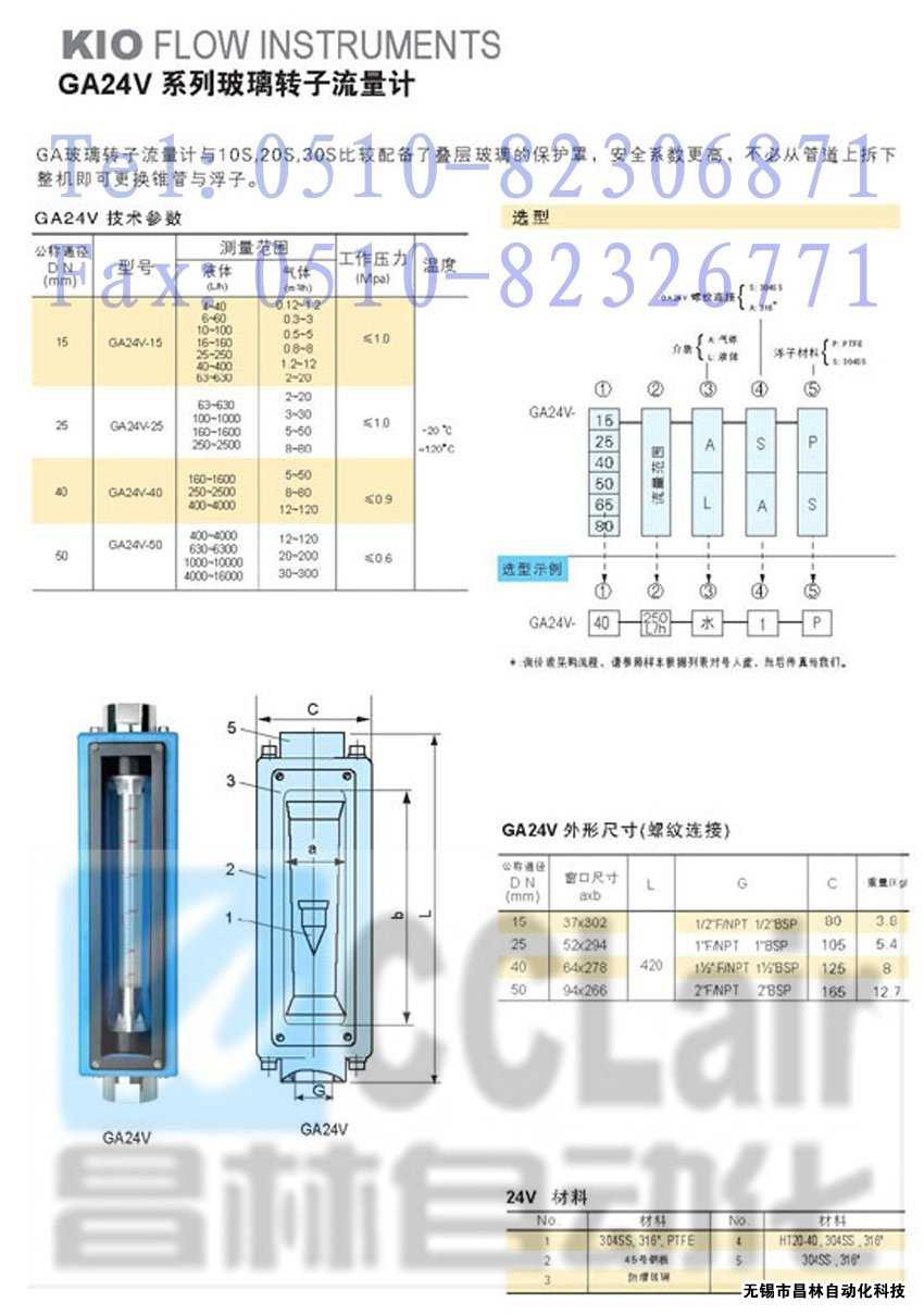 GA24V-40,GA24V-50玻璃轉(zhuǎn)子流量計(jì)