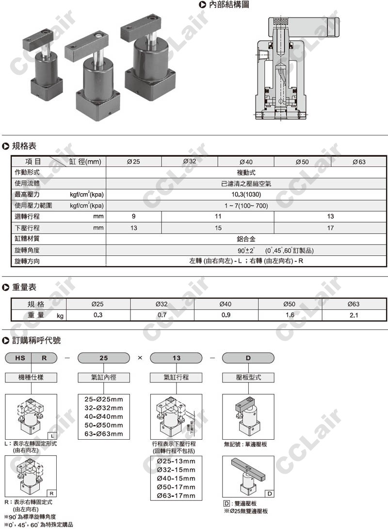HSL-50*17,HSL-63*17,HSR-25*13-D,HSR-32*15-D,HSR-40*15-D,HSR-50*17-D,HSR-63*17-D,氣壓式轉(zhuǎn)角下壓缸