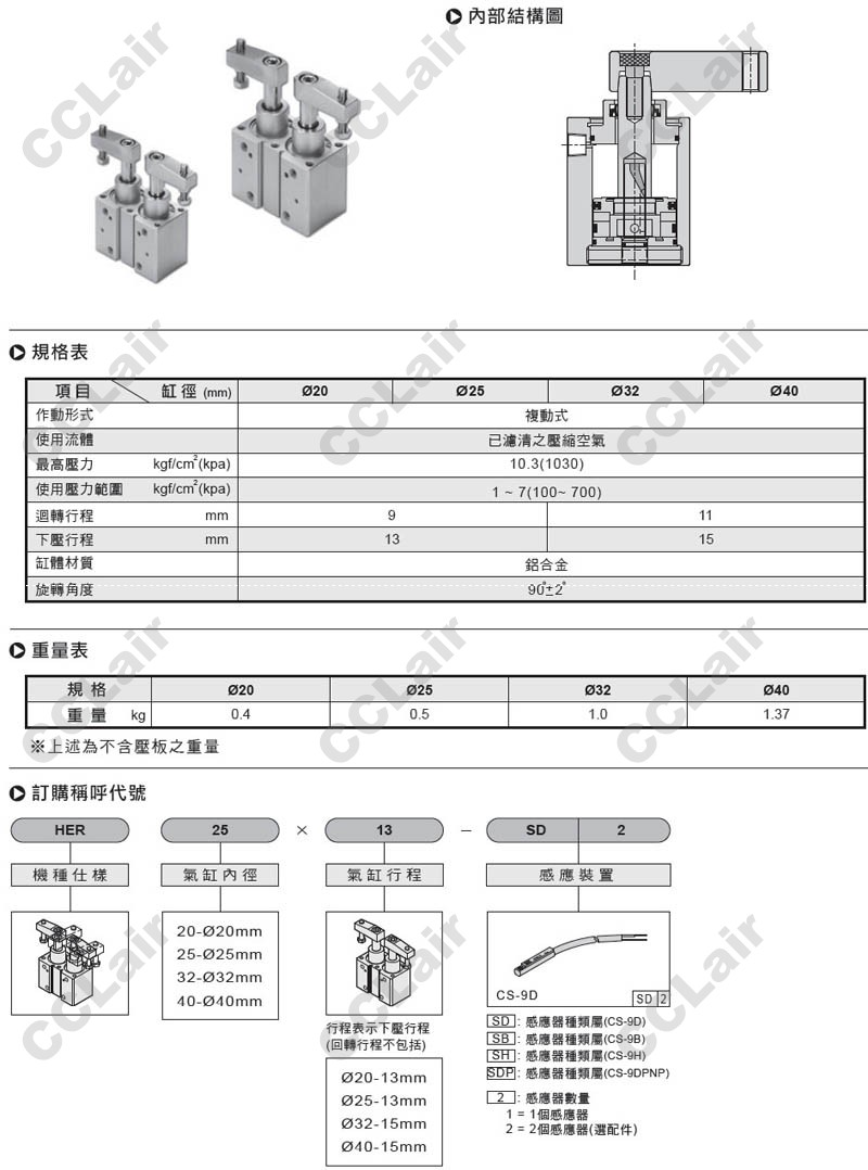 型號: 氣立可(chelic),HER20*13-SD2,HER25*13-SB2,HER32*15,HER40*15,HER-20,HER-25,HER-32,HER-40