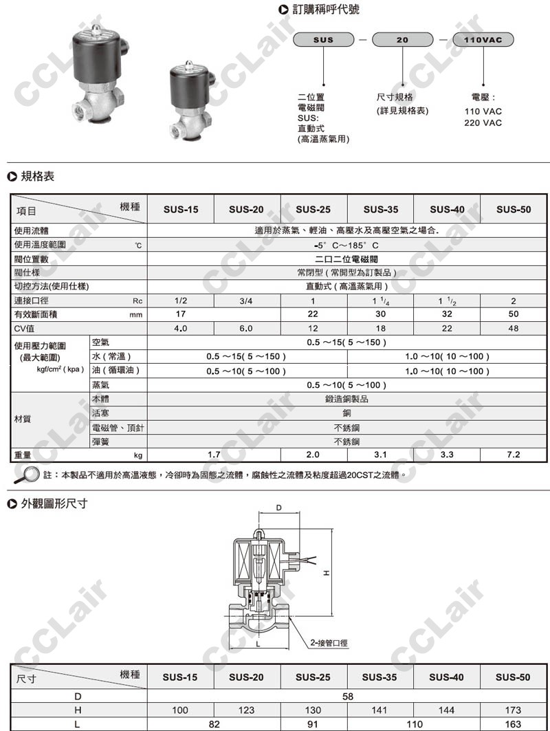 氣立可(chelic),SUS-25,SUS-35,SUS-40,SUS-50,SUS-15-220VAC,SUS-20-110VAC,電磁閥
