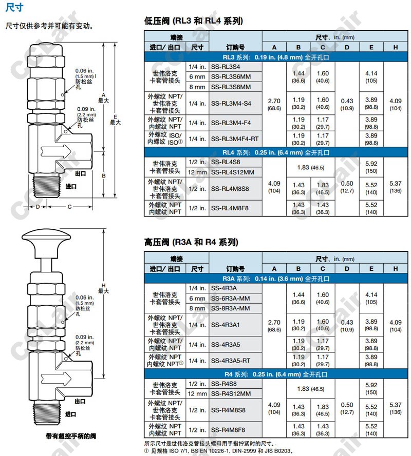 世偉洛克(swagelok),SS-RL3S4,SS-RL3S6MM,SS-RL3M4-S4,SS-RL4S8,SS-RL4M8S8,SS-4R3A,SS-R4S12MM,SS-R4M8S8,卸荷閥