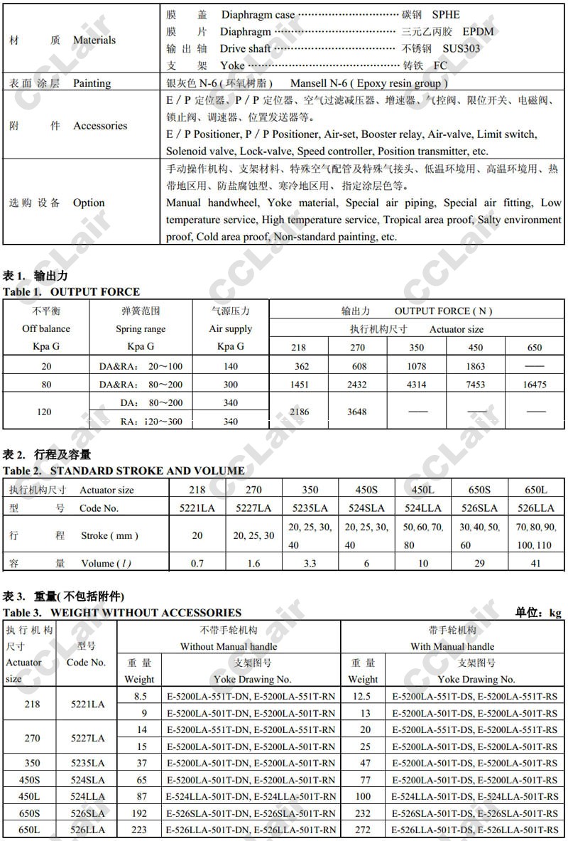 5221LA,5227LA,5235LA,524SLA,524LLA,526SLA,526LLA,氣動(dòng)薄膜式直行程執(zhí)行機(jī)構(gòu)