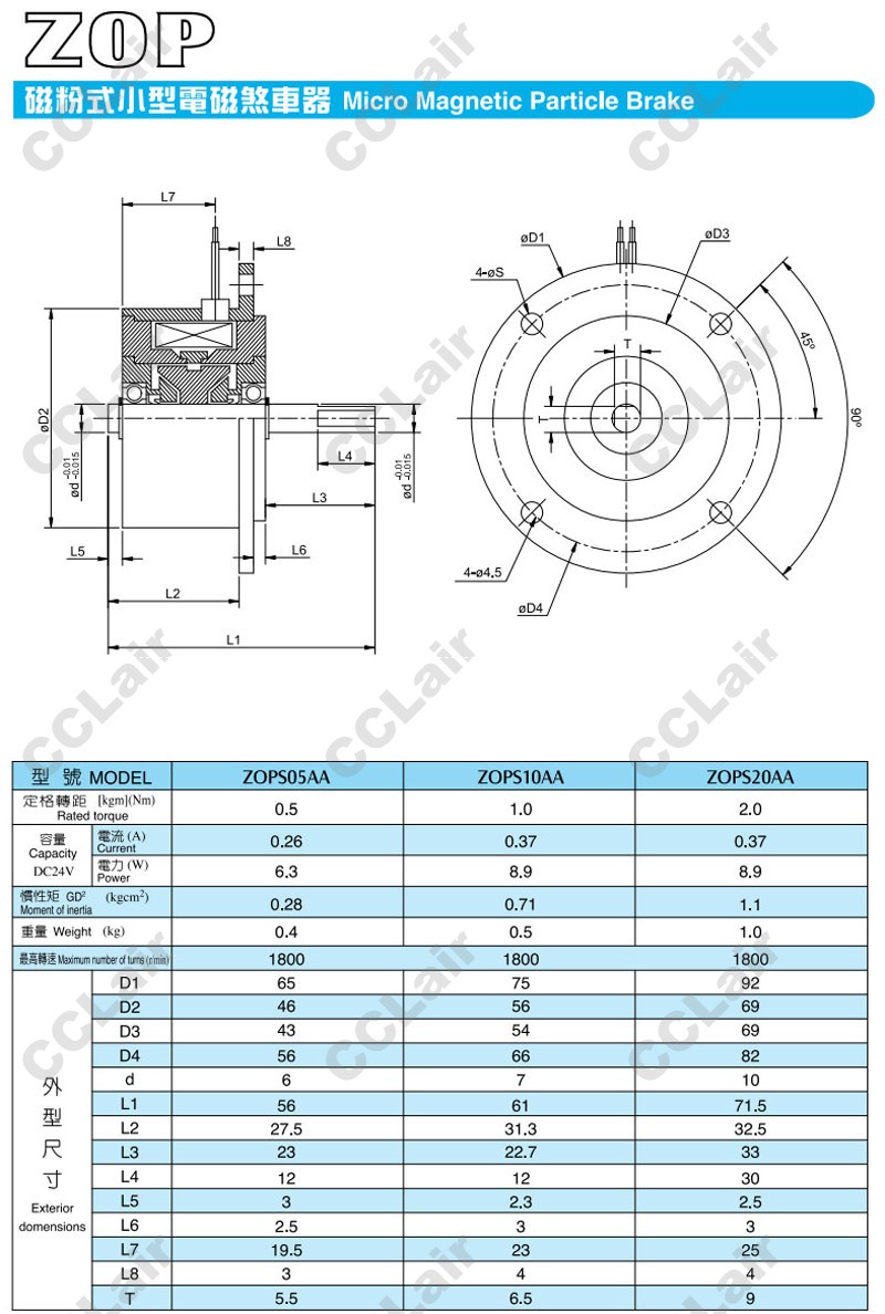 ZOPS05AA,ZOPS10AA,ZOPS20AA,電磁剎車器,CCLair