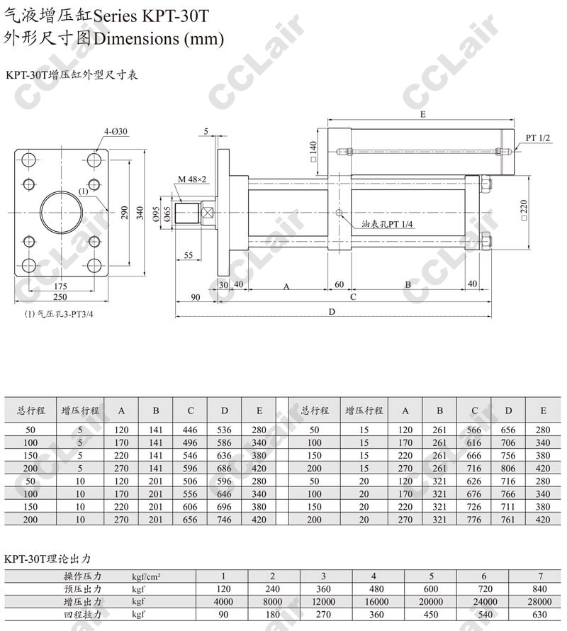 KPT63,KPT80,KPT100,KPT125,KPT160,KPTF63,KPTF80,KPTF100,KPTF125,KPTF160,ARK氣液增壓缸