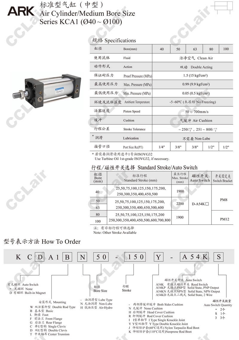 KCA1C40-25,KCA1C40-50,KCA1C40-75,KCA1C40-100,KCA1C40-125,CCLair KCA1C40-150,KCA1C40-175,KCA1G80-175,