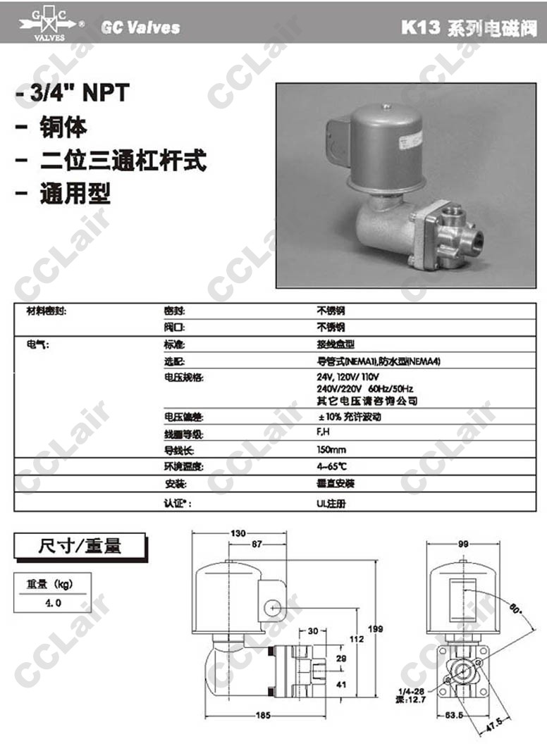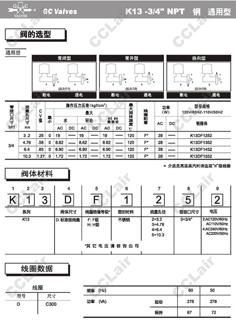 K13DF1252,K13DF1352,K13DF1452,K13DF1552,GC Valves二位三通杠桿式電磁閥