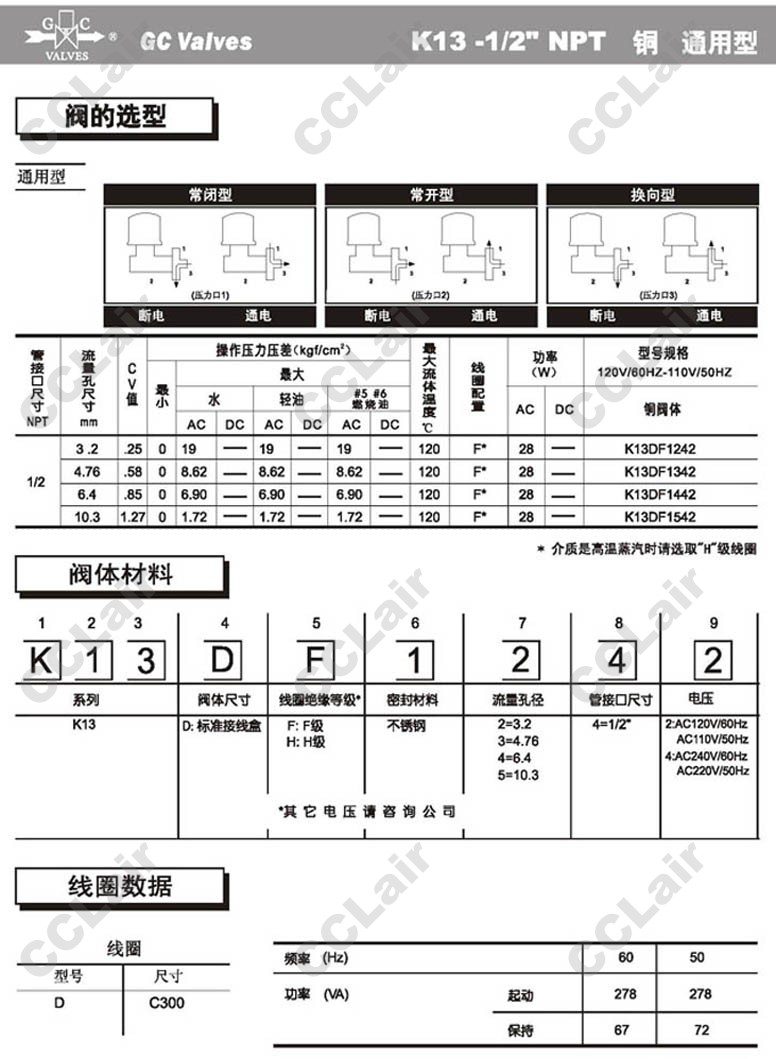 K13DF1242,K13DF1342,K13DF1442,K13DF1542,GC Valves二位三通杠桿式電磁閥 |