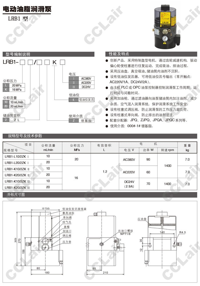 LRB1-L10,LRB1-L20,LRB1-K10,LRB1-K20,LRB1-L10/2ZKI,LRB1-L20/2ZKI,LRB1-K20/2ZKII,電動油脂潤滑泵 |