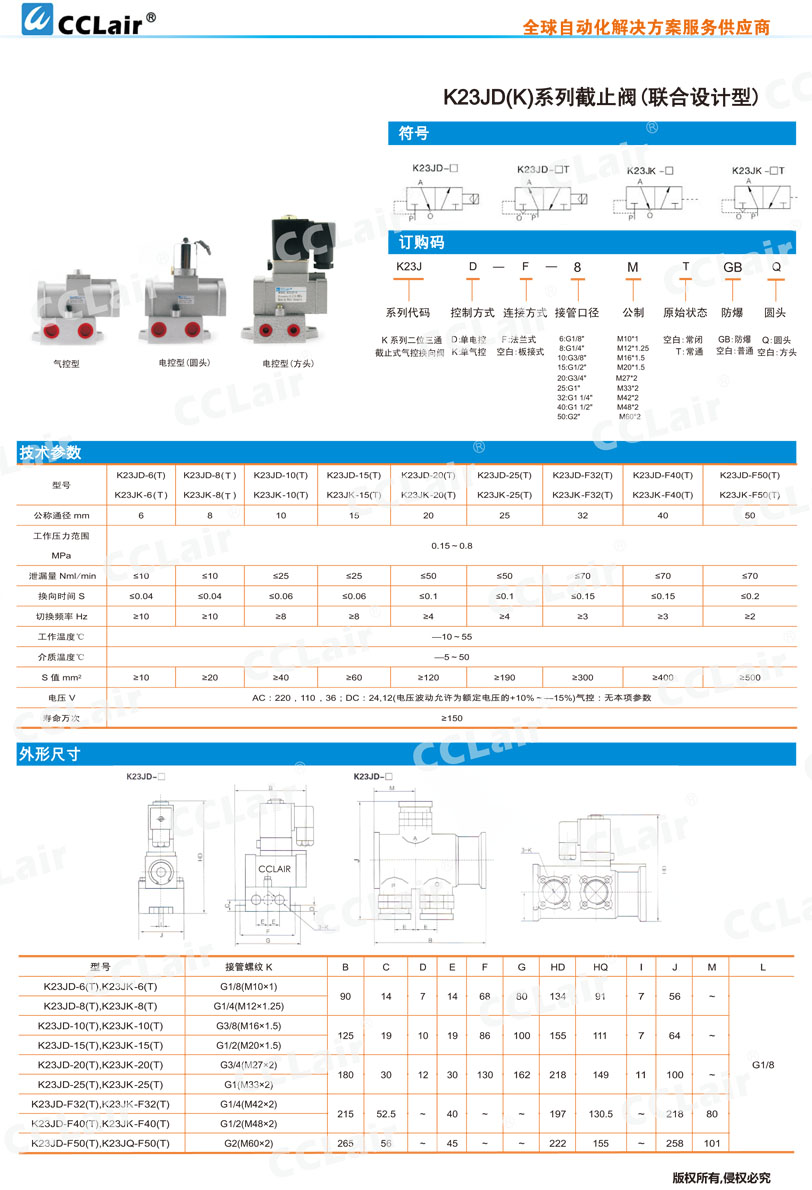 K23JK-6,K23JK-10,K23JK-15,K23JK-20,K23JK-25,K23JK-F32T,K23JK-F40T,K23JK-F50T,二位三通截止式氣控?fù)Q向閥