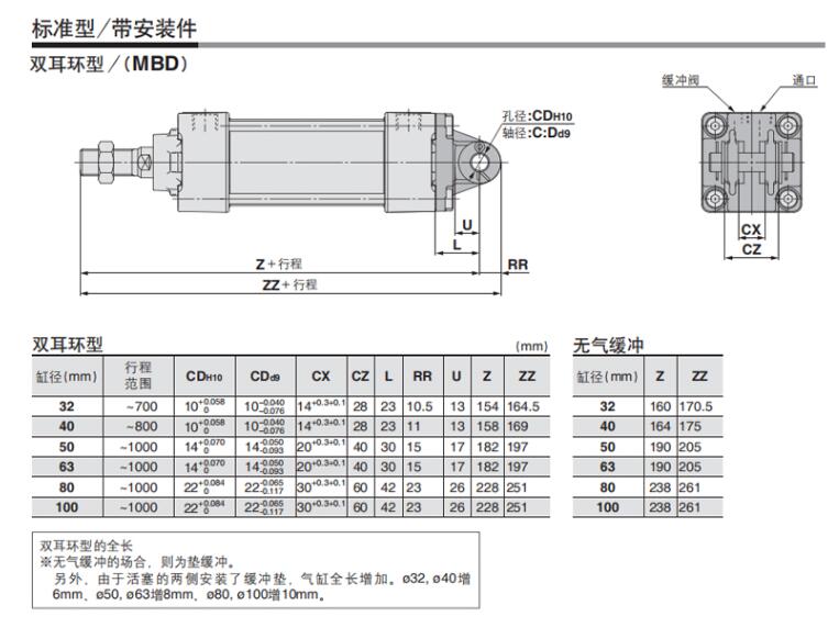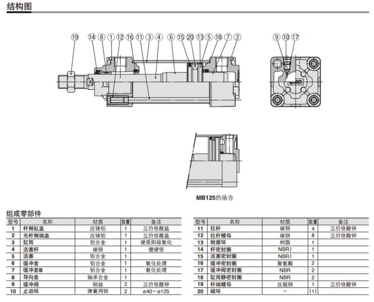 MDBT40TN-75,MDBT40TN-125,MDBT40TN-200,MDBT40TN-300,標準型氣缸