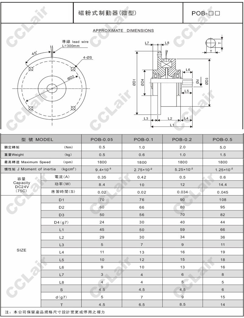 POB-0.05,POB-0.1,POB-0.2,POB-0.5,微型磁粉式制動器