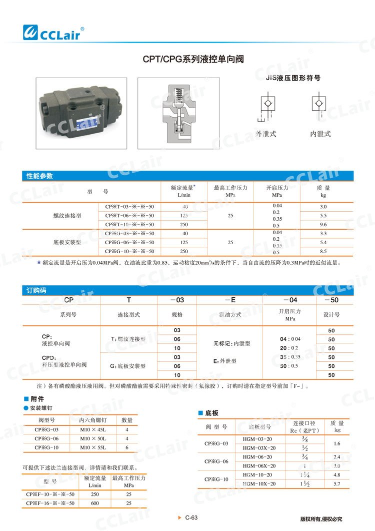 CPT-03,CPT-06,CPT-10,CPG-03,CPG-06,CPG-10,CPDT-03,CPDT-06,CPDT-10,CPDG-03,CPDG-06,CPDG-10,液控單向閥