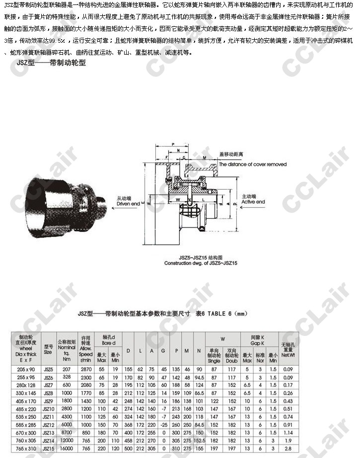 JSZ5,JSZ6,JSZ7,JSZ8,JSZ9,JSZ10,JSZ11,JSZ12,JSZ13,JSZ14,JSZ15,帶制動輪蛇形彈簧聯(lián)軸器