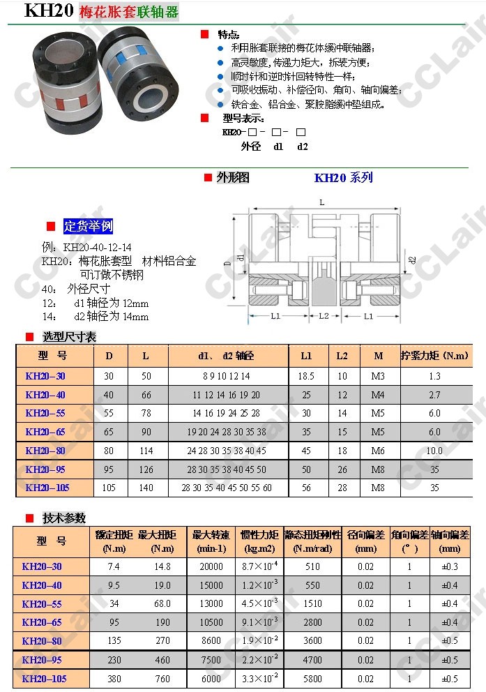 KH20-30,KH20-40,KH20-55,KH20-65,KH20-80,KH20-95,KH20-105,鋁合金梅花脹套聯(lián)軸器