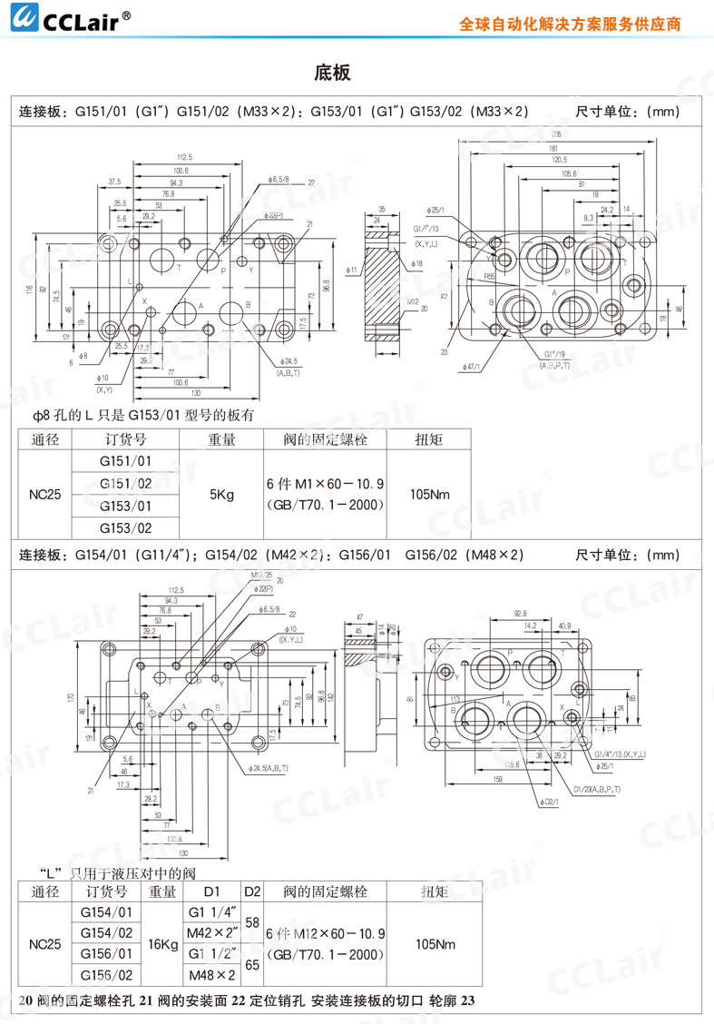 G151/01,G151/02,G153/01,G153/02,G154/01,G154/02,G156/01,G156/02,G153/02(M33×2),底板