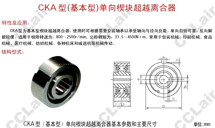 CKA50,CKA52,CKA55,CKA60,CKA63,CKA65,CKA70,CKA72,CKA75,CKA80,CKA90,CKA100,單向楔快式超越離合器