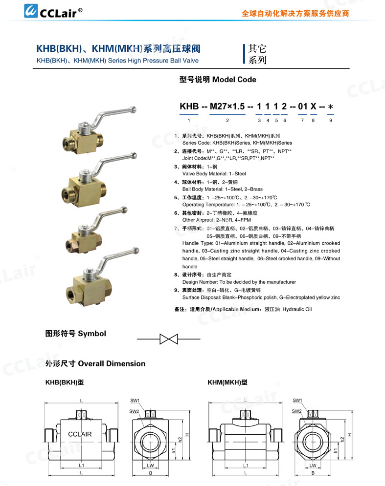 KHM-M12*1.25,KHM-M16*1.5,KHM-M22*1.5,KHM-M27*1.5,KHM-M30*1.5,KHM-M36*2,KHM-M42*2,KHM-M52*2,KHM-M60*2,高壓球閥