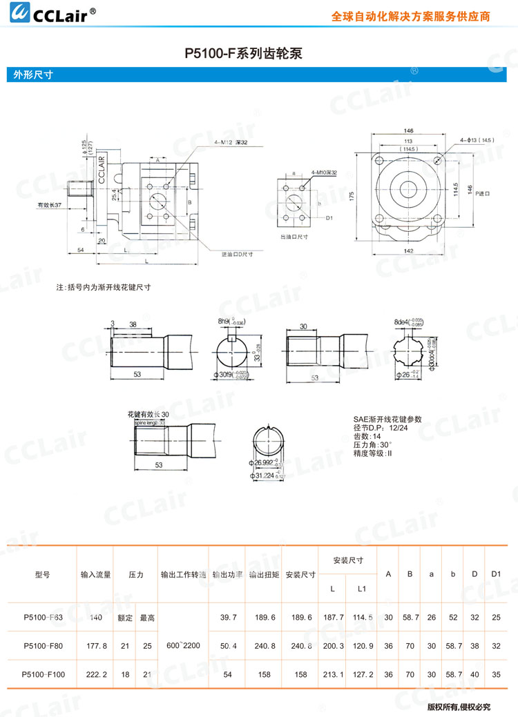 P5100-F63,P5100-F80,P5100-F100,齒輪泵