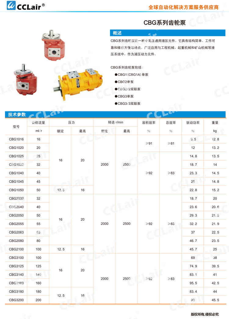 CBG3125/3125,CBG3140/3140,CBG3160/3160,CBG3180/3180,CBG3200/3200,雙聯(lián)齒輪泵