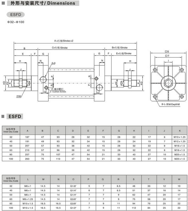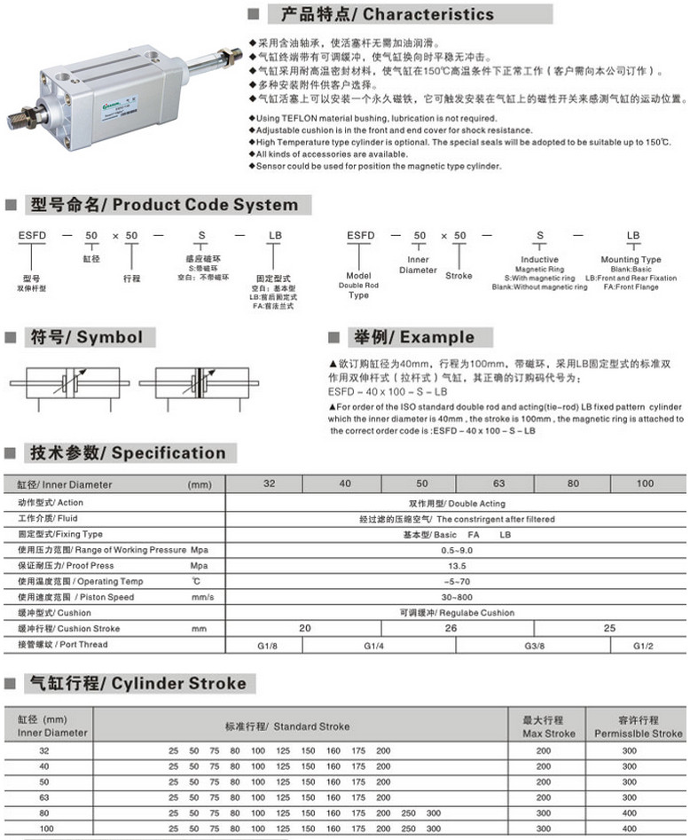 ESFD-32*25-S,ESFD-40*50-S,ESFD-50*75-S,ESFD-63*80-S,ESFD-80*100-S,標準氣缸 |