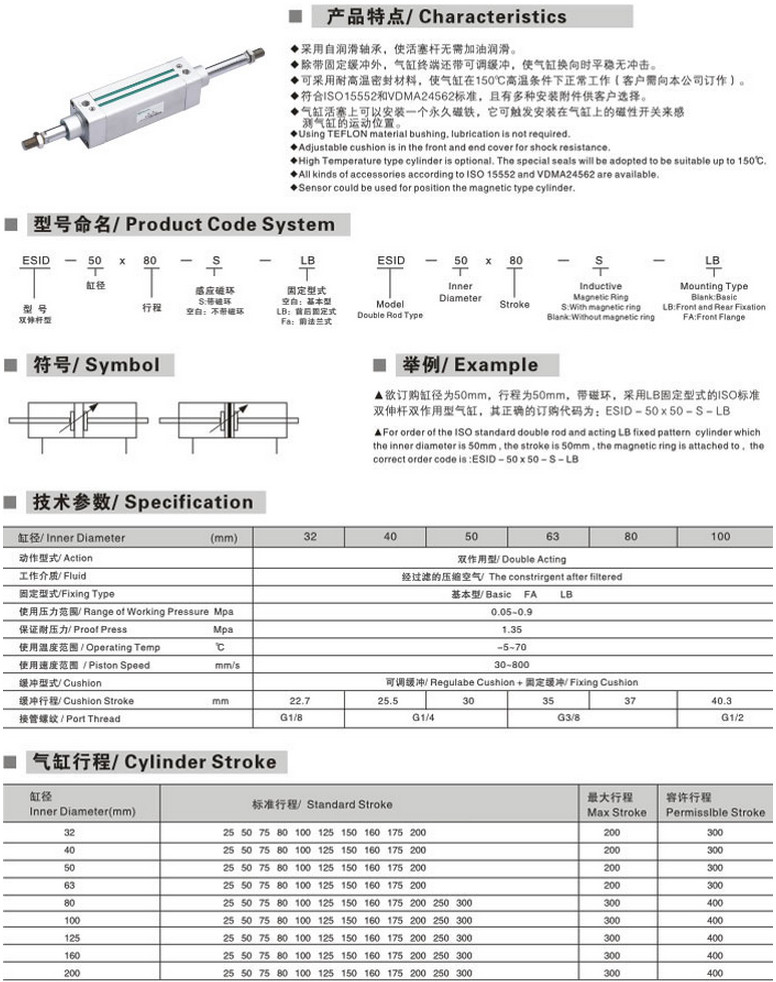 ESID-32*25-S,ESID-40*50-S,ESID-50*75-S,ESID-63*80-S,ESID-80*100-S,標準氣缸 |