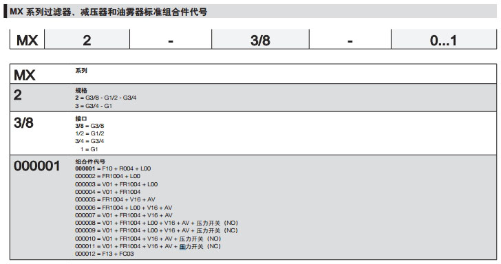MX2-3/8-000001,MX3-1/2-000003,MX2-3/4-000010,MX3-1-000005,camozzi氣源處理裝置組合件