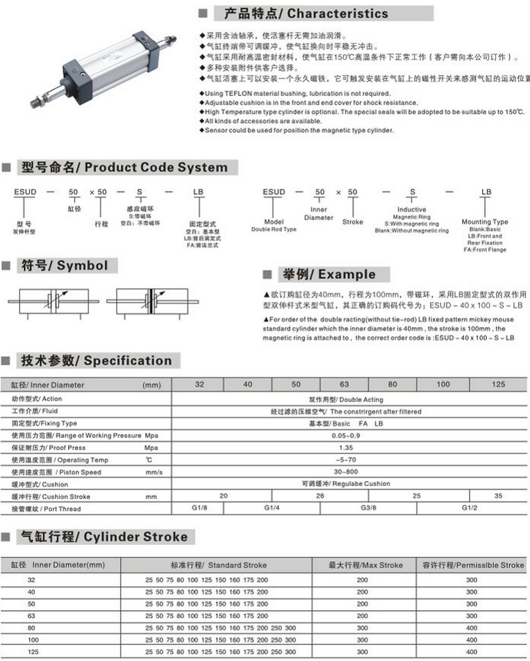 ESUD-32*25-S,ESUD-40*50-S,ESUD-50*75-S,ESUD-63*80-S,ESUD-80*100-S