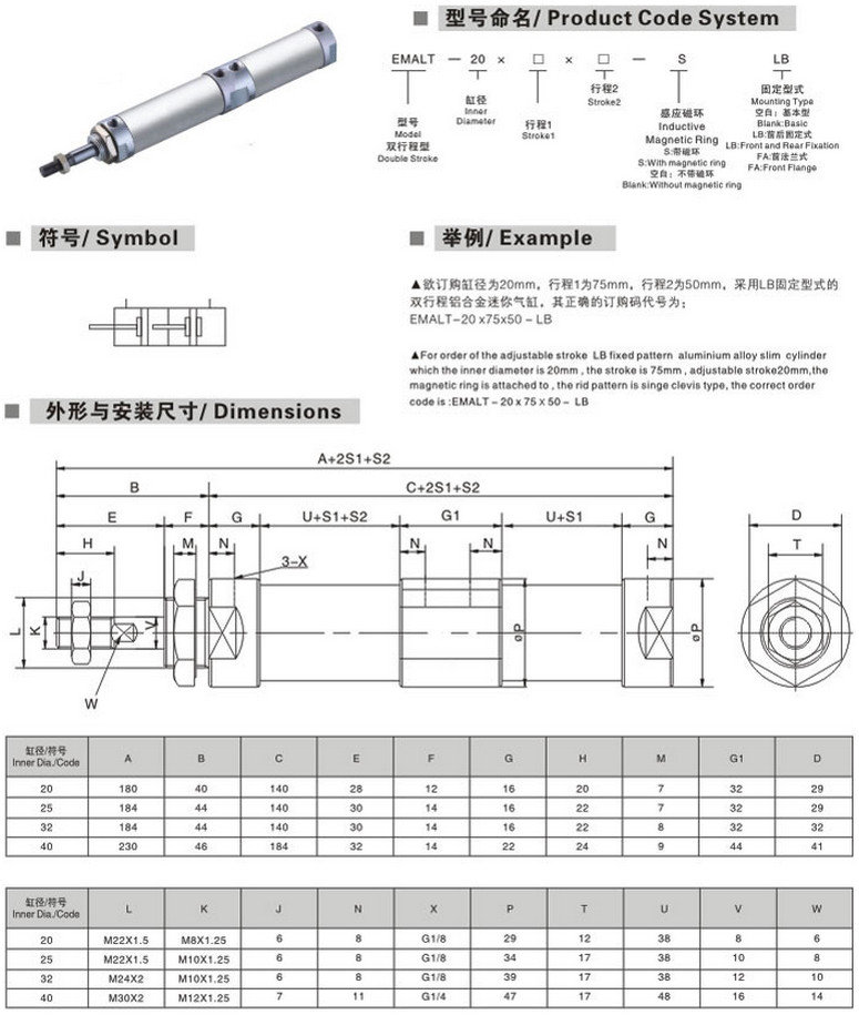 EMALT-20*75*50,EMALT-25*75*50,EMALT-32*75*50,EMALT-40*75*50,鋁合金迷你氣缸