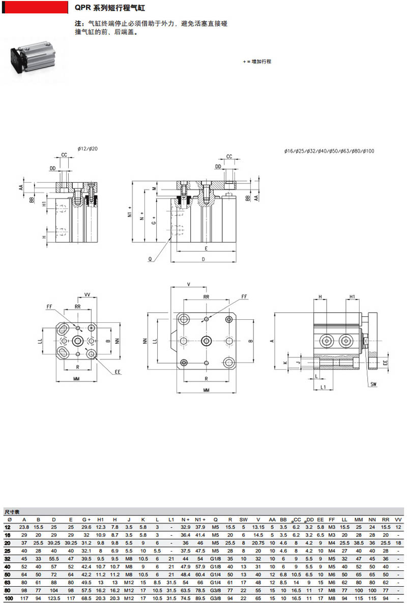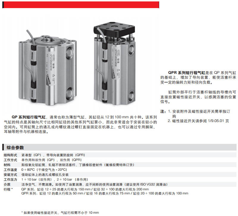 QP1A012A05,QP3A040A050,QP2A050A050,QP1A080A010,QPR3A040A010,camozzi短行程氣缸