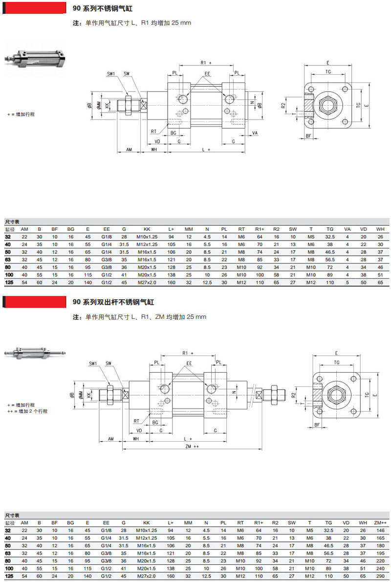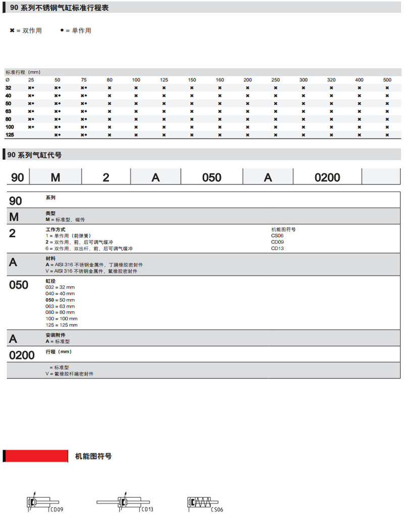 90M1A032A025,90M2A032A050,90M6A080A050,90M2A032A100,90M6A040A050,camozzi氣缸