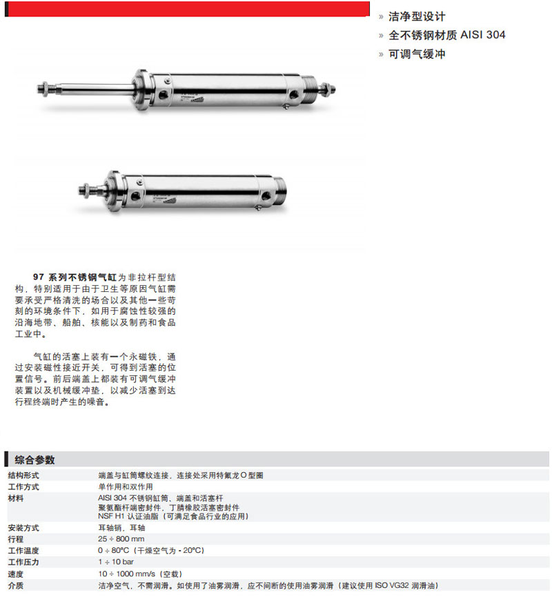97M1A032A025,97M2A032A050,97M6A032A080,97M6A050A025,camozzi氣缸