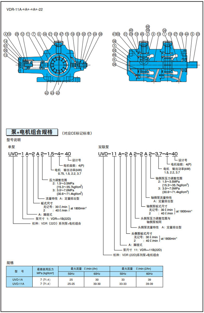 UVD-1A,UVD-11A,UVD-11A-A3-A3-3.7-4-40,UVD-1A-2A2-1.5-4-40,NACHI泵+電機(jī)組合