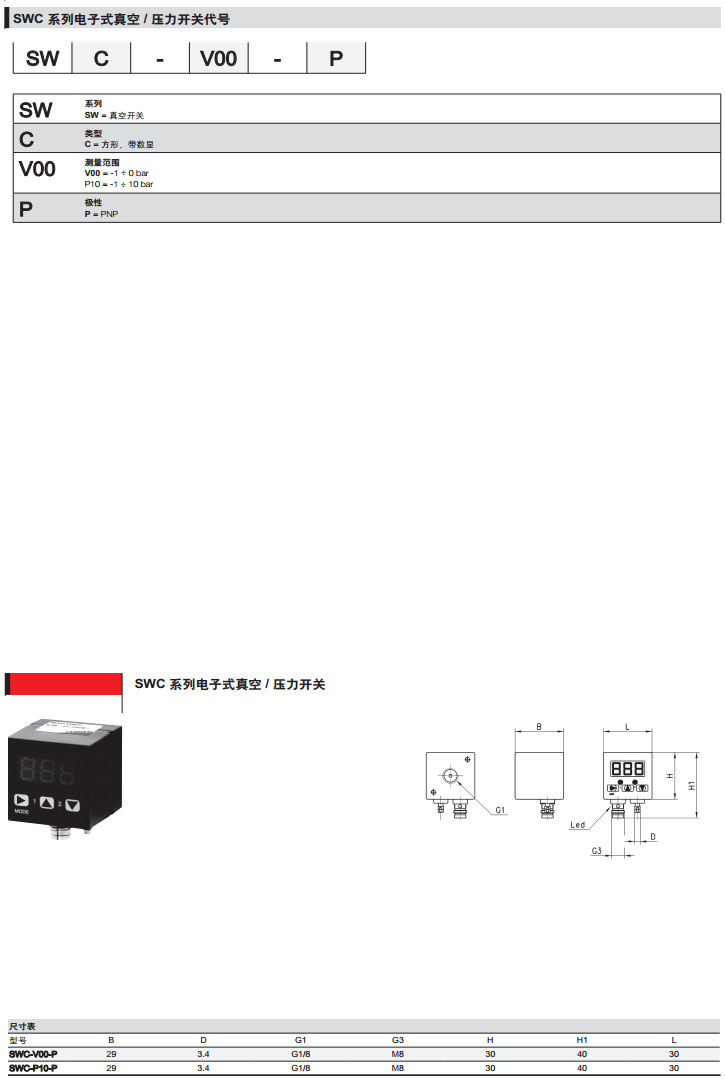 SWC-V00-P,SWC-P10-P,camozzi真空開關
