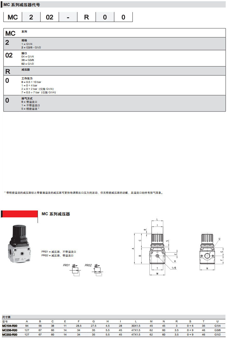 MC104-R00,MC138-R21,MC204-R25,MC238-R70,MC102-R10,camozzi減壓器 |
