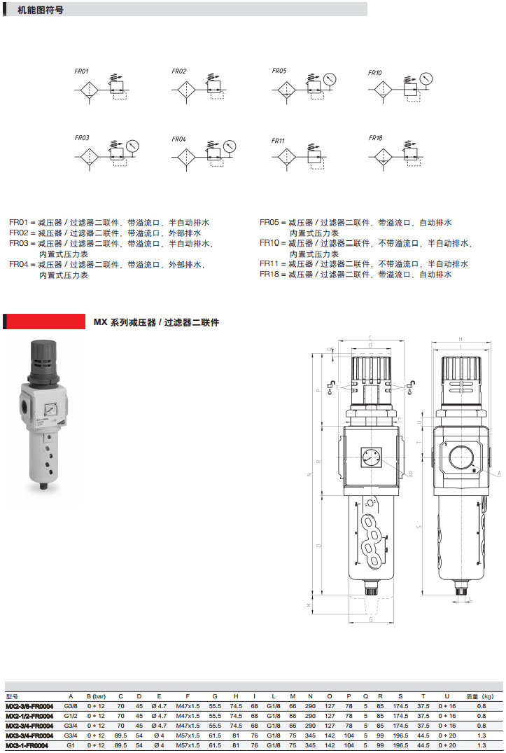 MX2-3/8-FR0004,MX2-1/2-FR0300,MX3-3/4-FR1044,camozzi減壓器 |