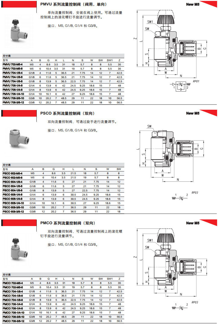 PMCU602-M5-4,PMCU702-1/8-6,PSCU602-1/8-4,PSVU706-1/8-8,camozzi流量控制閥