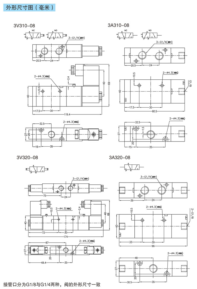 3A350-10,3A310-08,3A320-08,3A330-08,3A340-08,3A350-08,先導(dǎo)式3通5通氣控閥 |