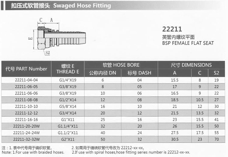 22211-04-04,22211-06-06,22211-08-08,22211-10-10,22211-20-20W,22211-32-32W,扣壓式軟管接頭