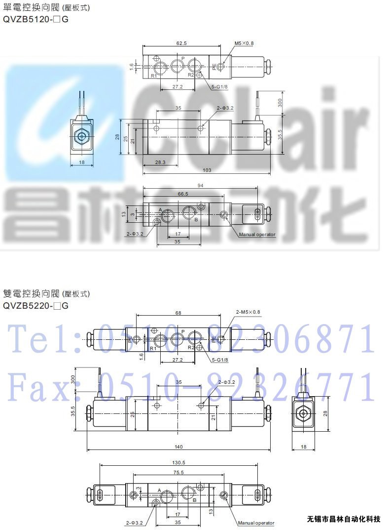 QVZL5220-5G-01,QVZL5220-5D-01,QVZL5220-6G-01,QVZL5220-6D-01,二位/三位五通電控換向閥