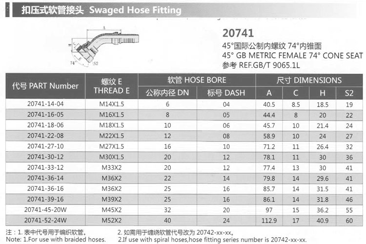 20741-14-04,20741-22-08,20741-36-14,20741-45-20W,20741-52-24W,扣壓式軟管接頭