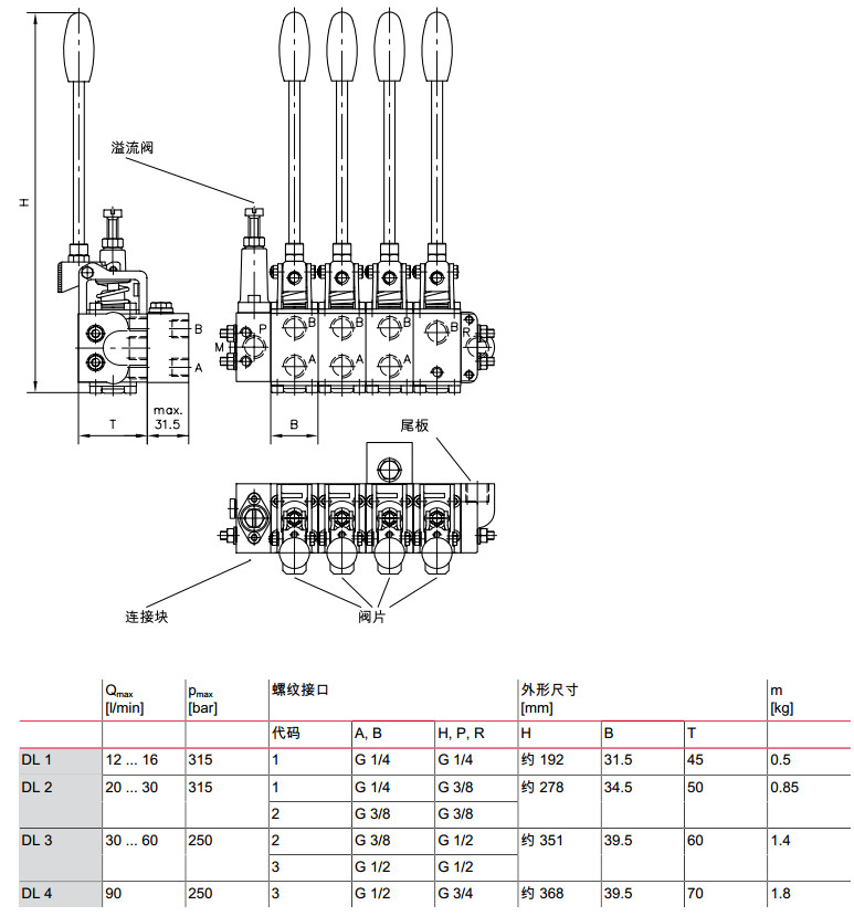 DL11-3-GGD-B/E1,DLSR31-3-GGD-B/E1,DLS41-3-GGD-B/E1,手動(dòng)操縱式多路換向閥