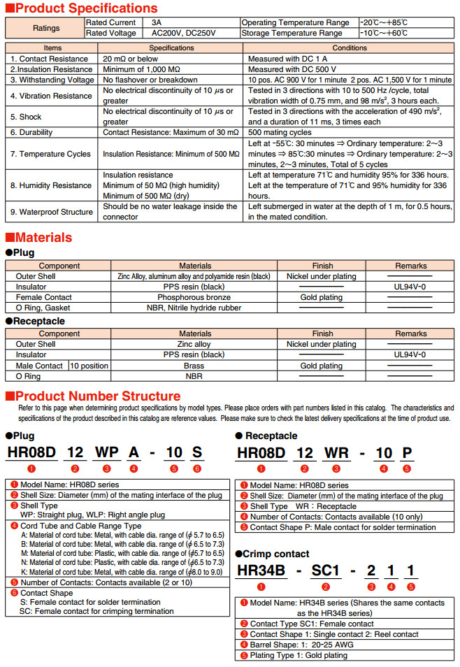 HR08D-12WPM-10S,HR08D-12WPN-2S,HR08D-12WPM-10SC,HR08D-12WPA-2S, |