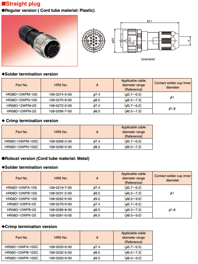 HR08D-12WPM-10S,HR08D-12WPN-2S,HR08D-12WPM-10SC,HR08D-12WPA-2S, |