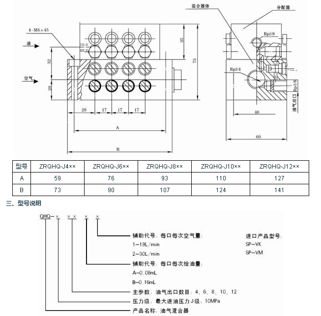 | ZRQHQ-J型油-氣分配混合器,主要由中碳合金鋼制造的單線遞進(jìn)式油分配器與由鋁合金材料制造的油氣混合器組合而成,設(shè)有一個(gè)進(jìn)氣口,一個(gè)進(jìn)油口,4~12個(gè)油氣出口。主要適用于單線二分式油氣潤(rùn)滑系統(tǒng)或雙線-遞進(jìn)式油氣潤(rùn)滑系統(tǒng)中。 | |||||||||||||||||||||||||||||||||||||||||||||||||||||||||||||||||||||||||||||||||||||||||||||