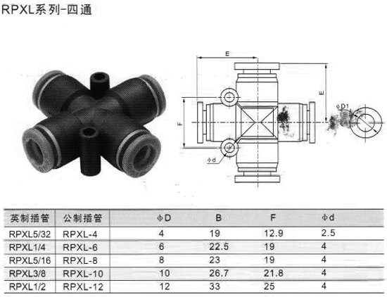 RPXL5/32,RPXL1/4,RPXL5/16,RPXL3/8,RPXL1/2,RPXL-4,RPXL-6,RPXL-8,四通接頭