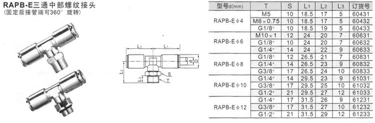 RAPB-E4,RAPB-E6,RAPB-E8,RAPB-E10,RAPB-E12,三通中部螺紋接頭