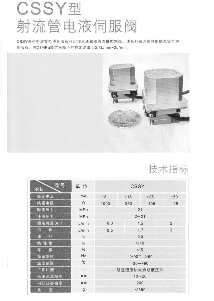 CSSY-0.3,CSSY-1.2,CSSY-2,射流管電液伺服閥