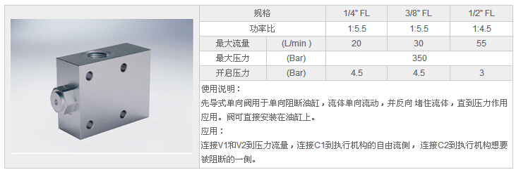 HYVBPSE 1/4" FL,HYVBPSE 3/8" FL,HYVBPSE 1/2" FL,單先導式單向閥